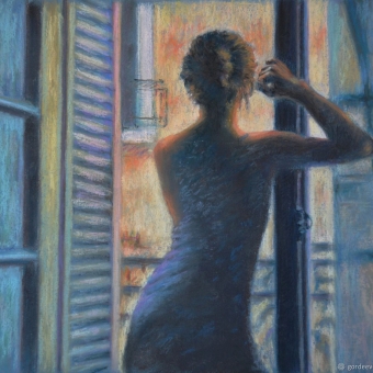 Она таится у двери,