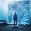 Плачет девушка в кафе, у открытого окна.