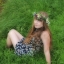 На голове венок.